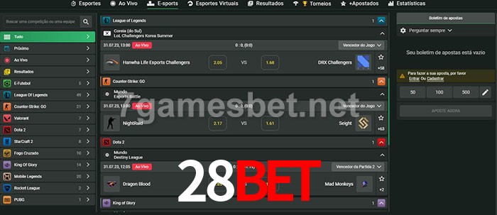 A aposta 28bet oferece aos jogadores a experiência mais conveniente de apostas em eSports!